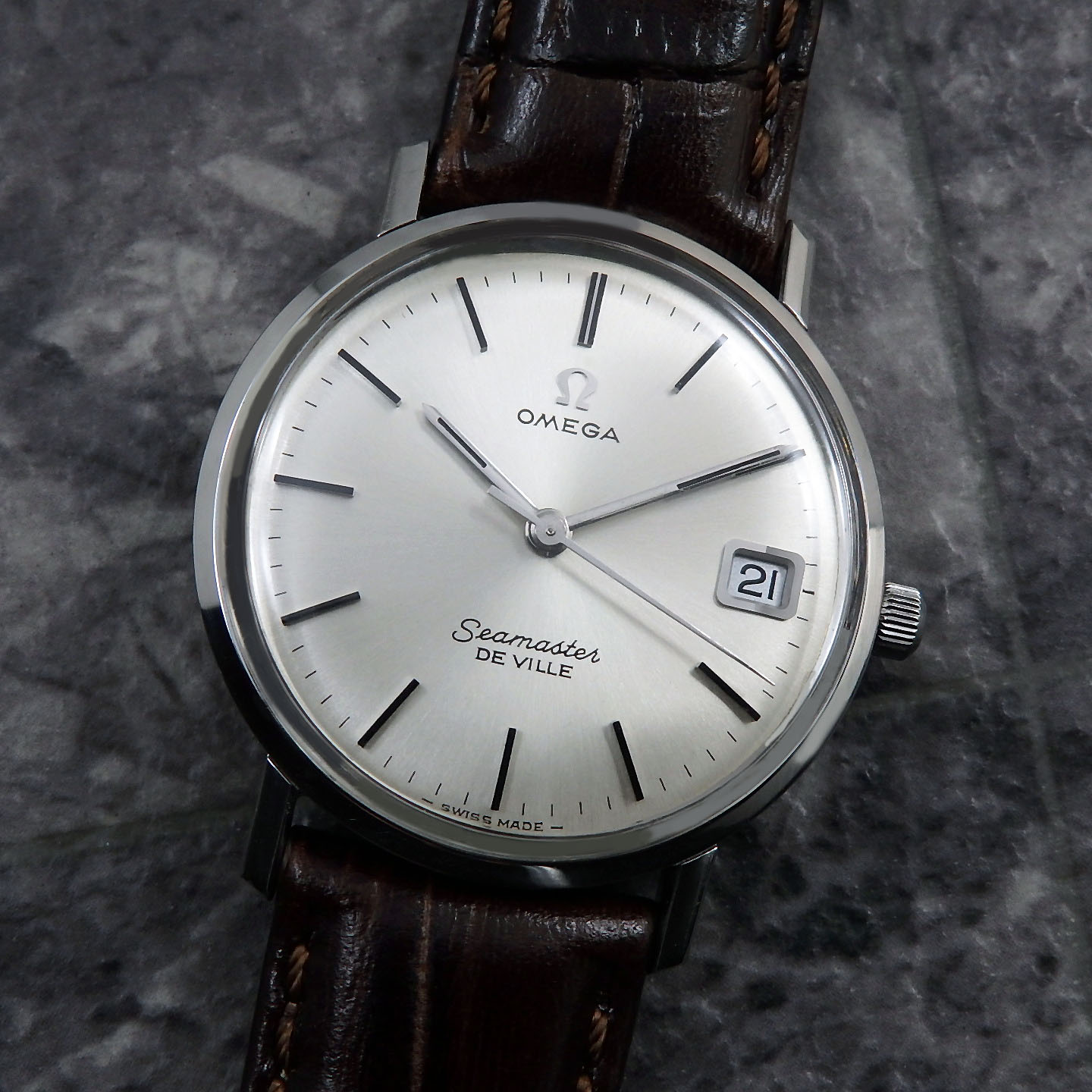 造りよい美しいバーインデックスとペンシルハンドもダイアルとのバランスがよく、アンティークにしか味わえない雰囲気もあり、コダワリと魅力あふれるオメガです。そして竜頭もΩ竜頭です。