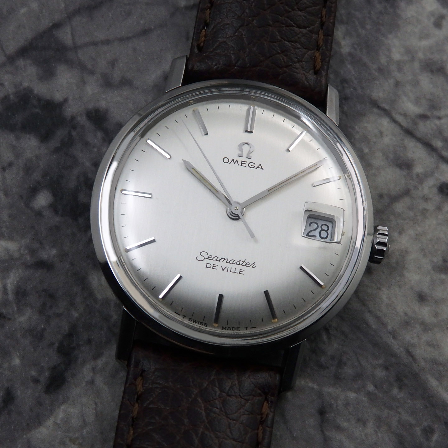 造りよい美しいインデックスとペンシルハンドも文字盤とのバランスがよく、アンティークにしか味わえない雰囲気もあり、コダワリと魅力あふれるオメガです。そして竜頭もΩ竜頭です。