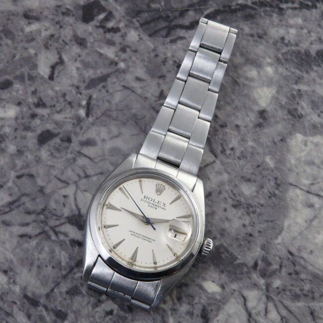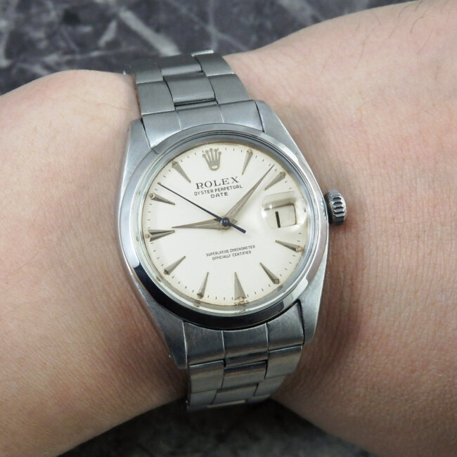 デイト付きの程よい大きさで人気も高くビンテージモデル特有の雰囲気も十分にあり、歴代のオイスターモデルの飽きのこない洗練されたデザインで腕にはめた大きさのバランスもよくオススメです。