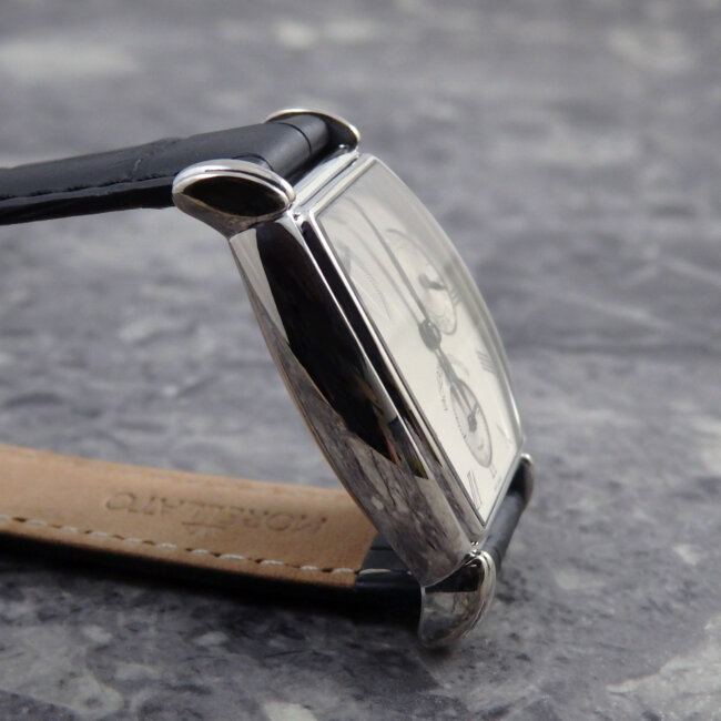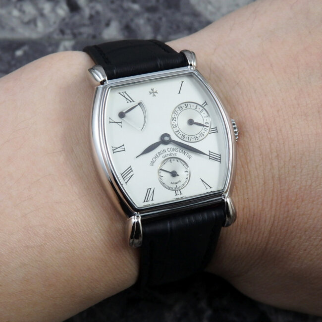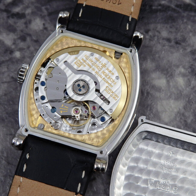 全体のバランスも良くVACHERONらしいトノーケースは、金無垢ホワイトゴールド。