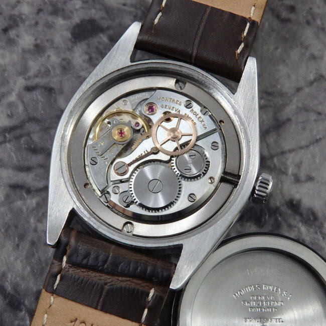 5振動でそのクオリティは歴代ロレックスの手巻きモデルの中でも評判も良くメンテナンス的にも、そして耐久性も優れております。竜頭もロレックス王冠マーク入りです。