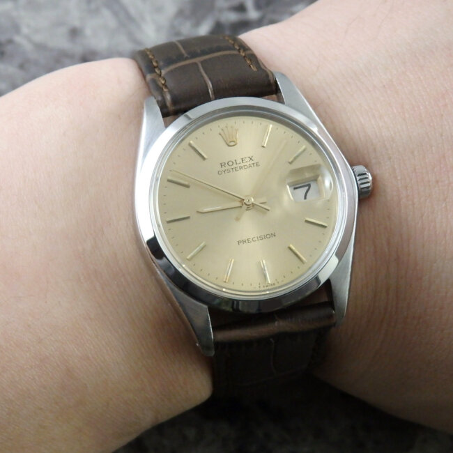 デイト付きの程よい大きさで人気も高くビンテージモデル特有の雰囲気も十分にあり、歴代のオイスターモデルの機能性、耐久性も高い飽きのこない洗練されたデザインで腕にはめた大きさのバランスもよくオススメです。