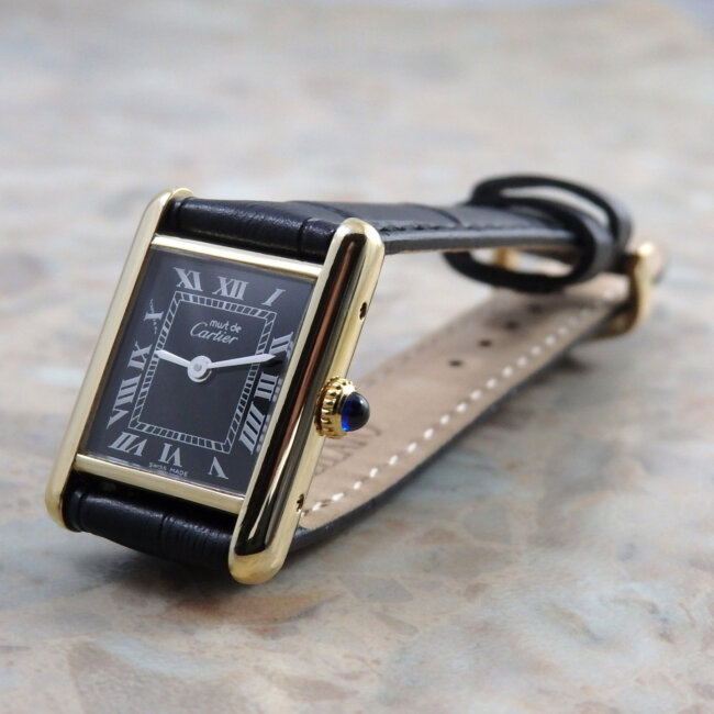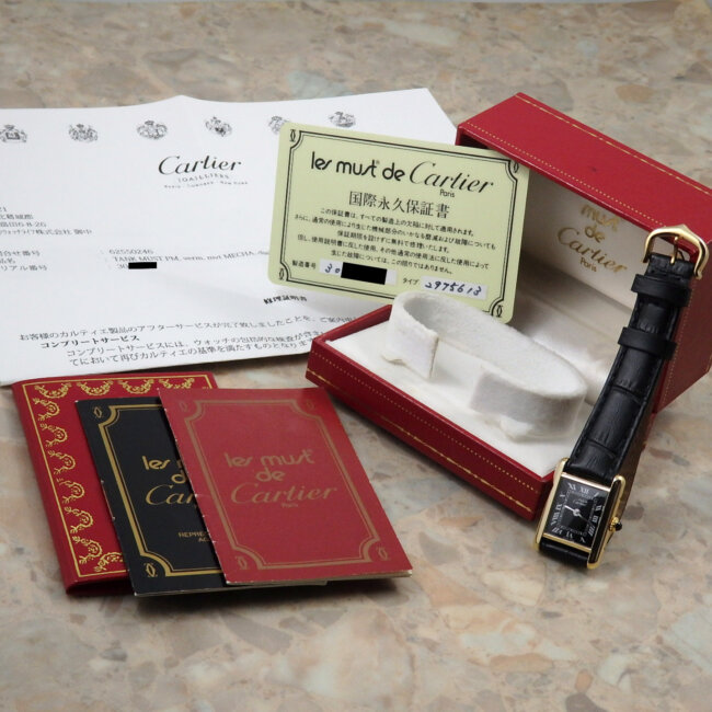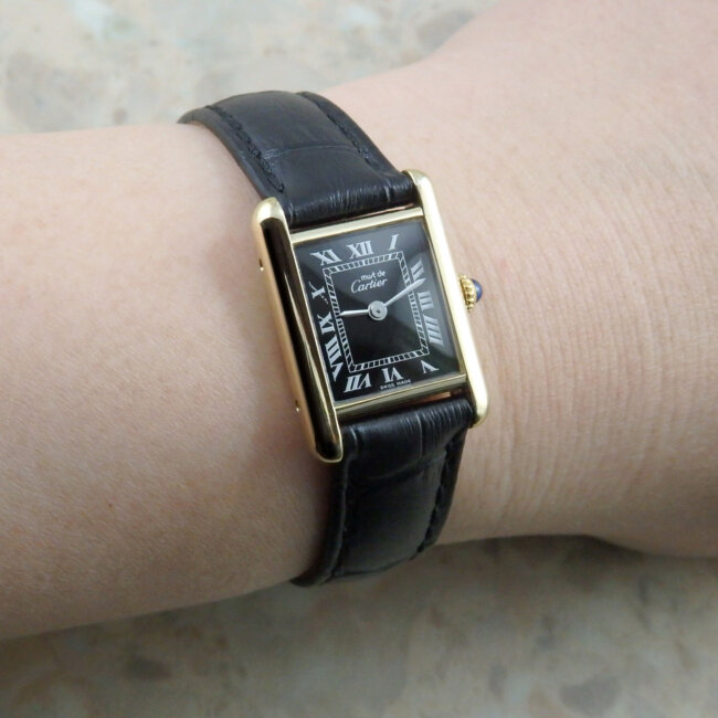 - カルティエ マストタンク SM 手巻き レディース 黒文字盤 コンプリートサービス済