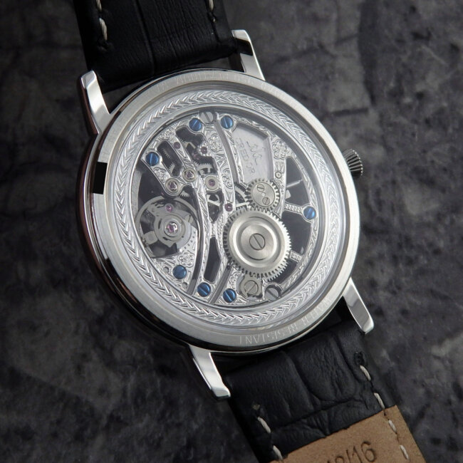 ムーブメントのブリッジの形状は、「竹」をイメージに曲線と節々の力強さを表現されております。