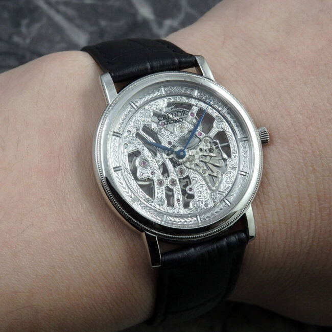 文字盤・インデックス、ハンドやケースなど、細部に至るまで、市場に少ない希少なセイコーの歴史を誇るクレドールならではでの日本の芸術的で魅力ある逸品です。