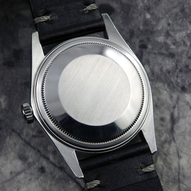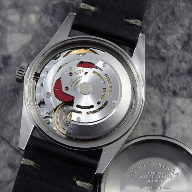 ムーブメントはCal.3100番台のムーブメントの礎となった完成度も高い歴代ロレックスの自動巻きムーブメントCal.3035を搭載。竜頭もロレックス王冠マーク入りです。