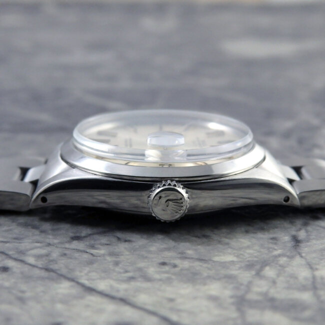 歴代ロレックスの自動巻きモデルの中でも評判も良い名機です。竜頭もロレックス王冠マーク入りです。