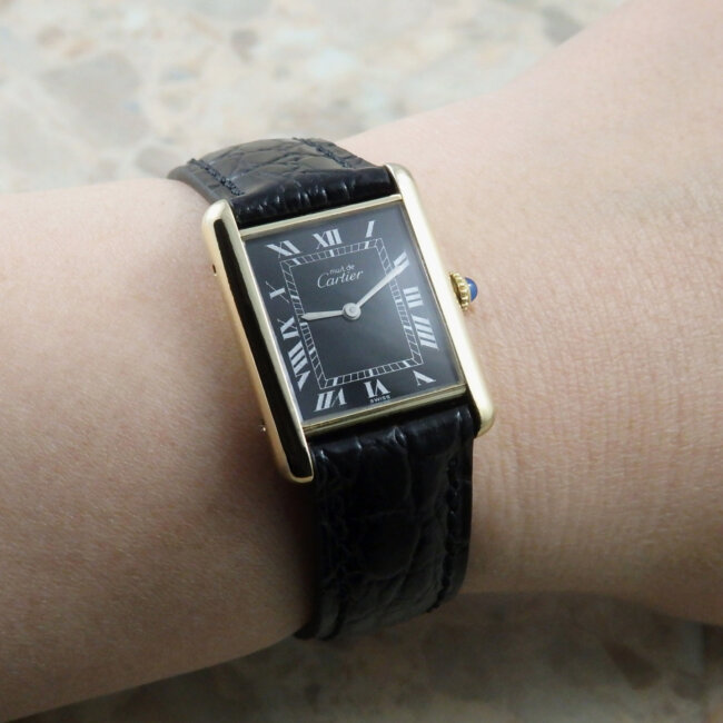 カルティエ マストタンク LM 手巻き式 ヴィンテージ 黒文字盤 ブラック ローマン メンズ Cartier Tank 時計