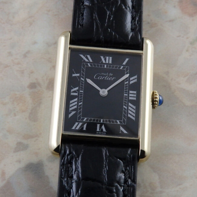 - カルティエ マストタンク LM 手巻き式 ヴィンテージ 黒文字盤 ブラック ローマン メンズ Cartier Tank 時計