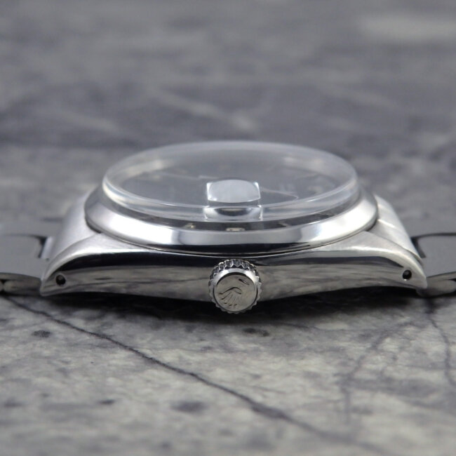 5振動でそのクオリティは歴代ロレックスの手巻きモデルの中でも評判も良くメンテナンス的にも、そして耐久性も優れております。竜頭もロレックス王冠マーク入りです。