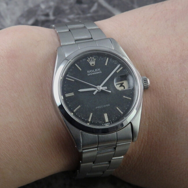 デイト付きの程よい大きさで人気も高くビンテージモデル特有の雰囲気も十分にあり、歴代のオイスターモデルの機能性、耐久性も高い飽きのこない洗練されたデザインで腕にはめた大きさのバランスもよくオススメです。