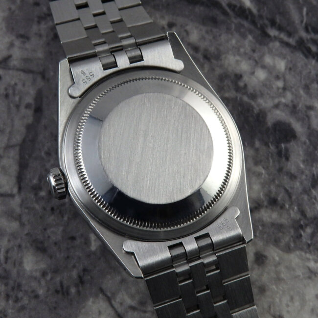 デイトジャストの中でも、落ち着いた雰囲気と特有の魅力ある、現行モデルのラインナップにもない仕様の、このモデルのエングレーブドベゼルを装備。