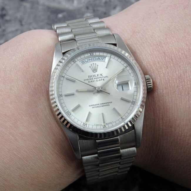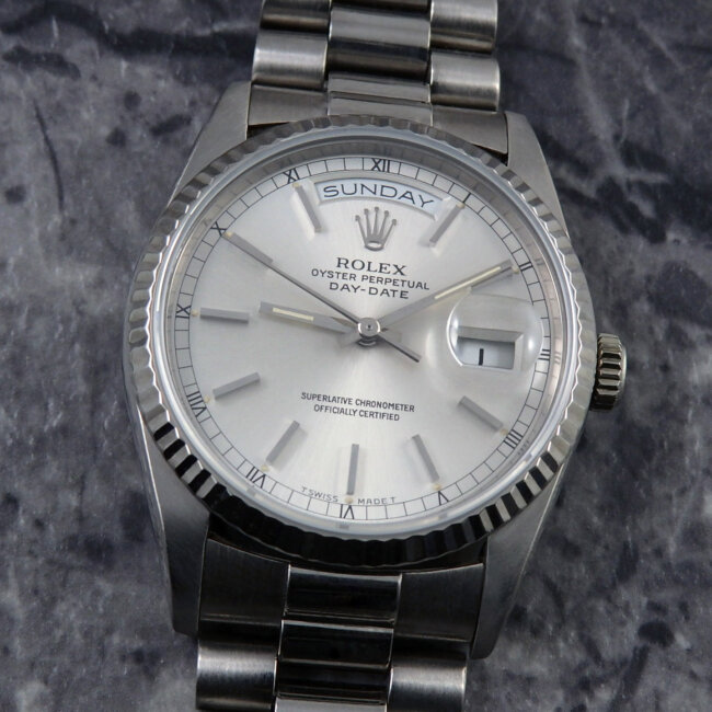 - ロレックス デイデイト Ref.18239 18金無垢ホワイトゴールド 1993年製 箱・ギャランティ・タグ