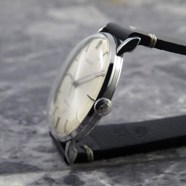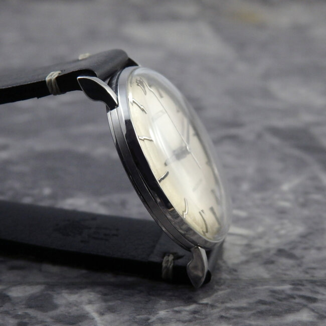 この時代のノンオイスターのケースで、この年代の愛嬌をもある綺麗なフォルムとラグで腕にはめた、はめ心地の良さも魅力です。
