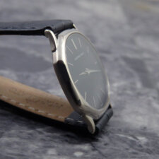 フェイスとインデックスとコントラストも良く、美しい装飾のドルフィンハンドの長短針は全体的にもまとまりある、より良い雰囲気で時刻も楽しめる組み合わせ。