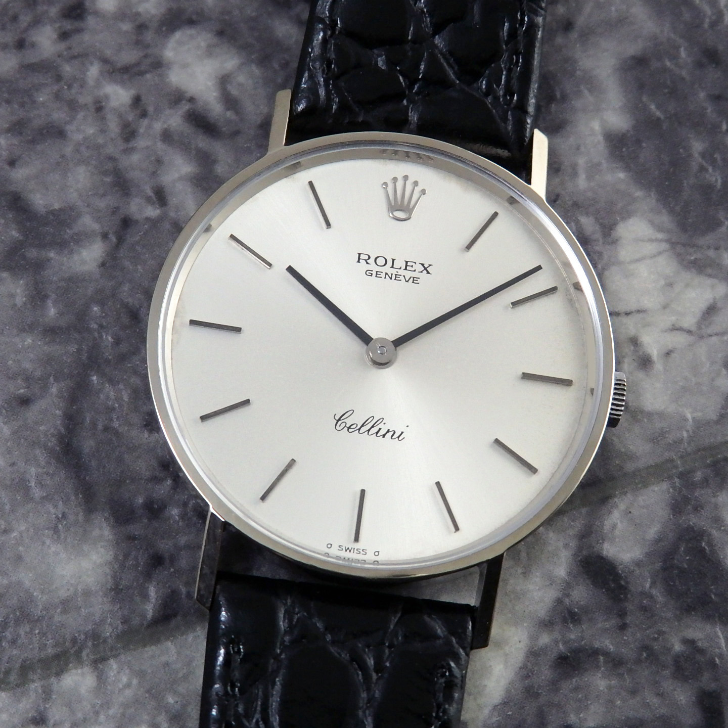 - 写真の新品の本革ベルト・イタリア モレラート 社製の、ブラックにこの時代のSWISS MADEのステンレス尾錠が付属いたします。
