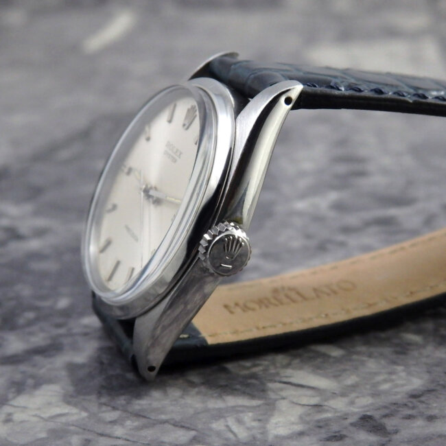 同年代のロレックスのオイスターモデルの中では珍しい大きめの王冠マーク6ミリデカリューズが装備。