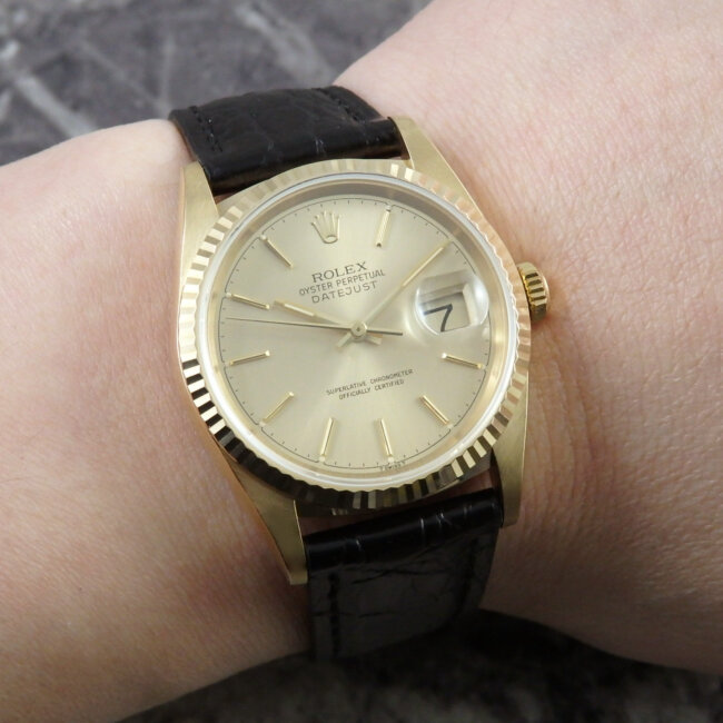 ロレックスのヴィンテージのデイトジャストで、この時代の金無垢素材の希少な逸品。