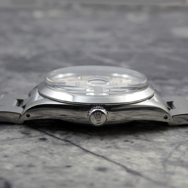デイト付きの程よい大きさで人気も高くビンテージモデル特有の雰囲気も十分にあり、歴代のオイスターモデルの飽きのこない洗練されたデザインで腕にはめた大きさのバランスもよくオススメです。