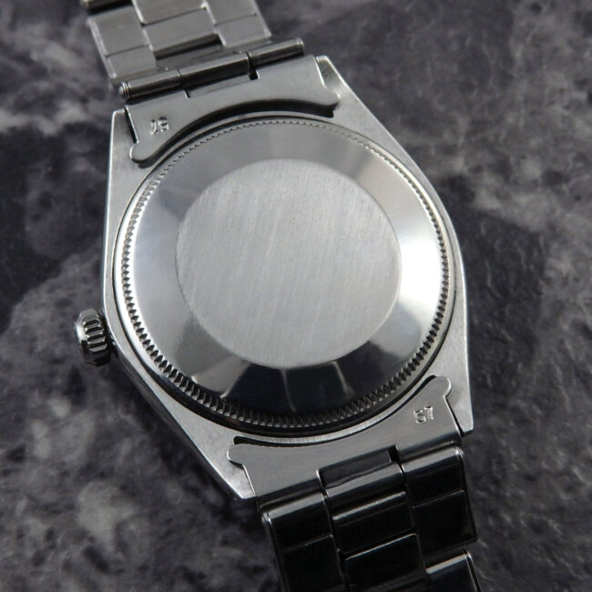 5.5振動でそのクオリティは歴代ロレックスの自動巻きモデルの中でも評判も良くメンテナンス的にも、そして耐久性も優れております。竜頭もロレックス王冠マーク入りです。