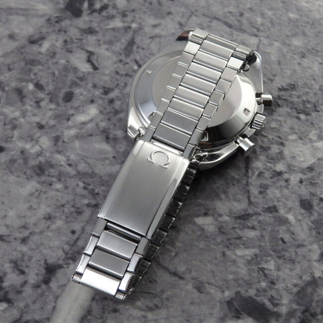 ブレスも大変希少なキャタピラブレスが付属し、格好よくコレクティブルなスピードマスターの逸品。