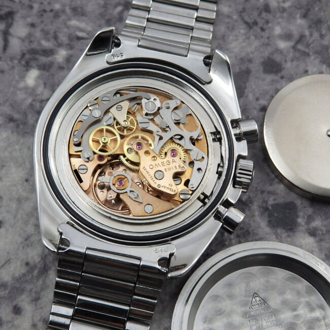 名機Cal.861搭載。安定感のある手巻きクロノグラフムーブメントで評判も良く、そして耐久性も優れたムーブメントです。