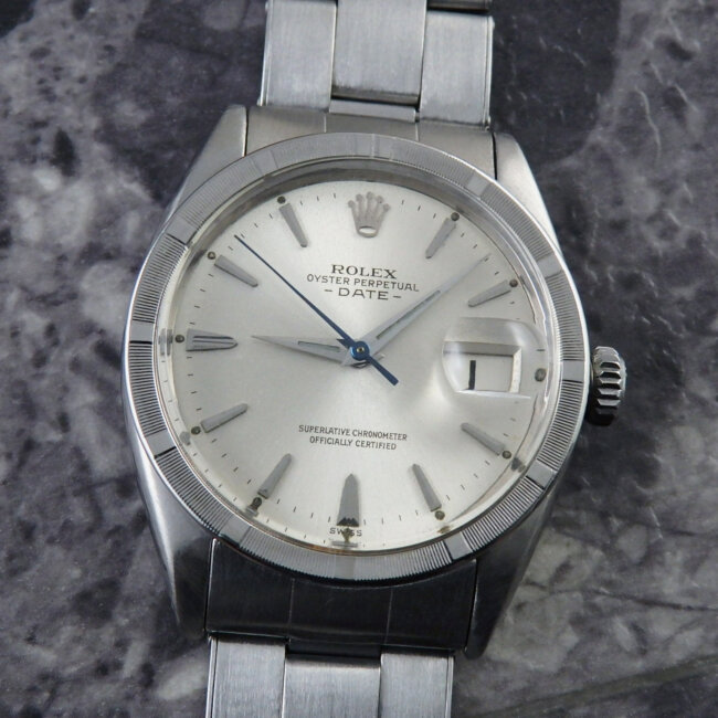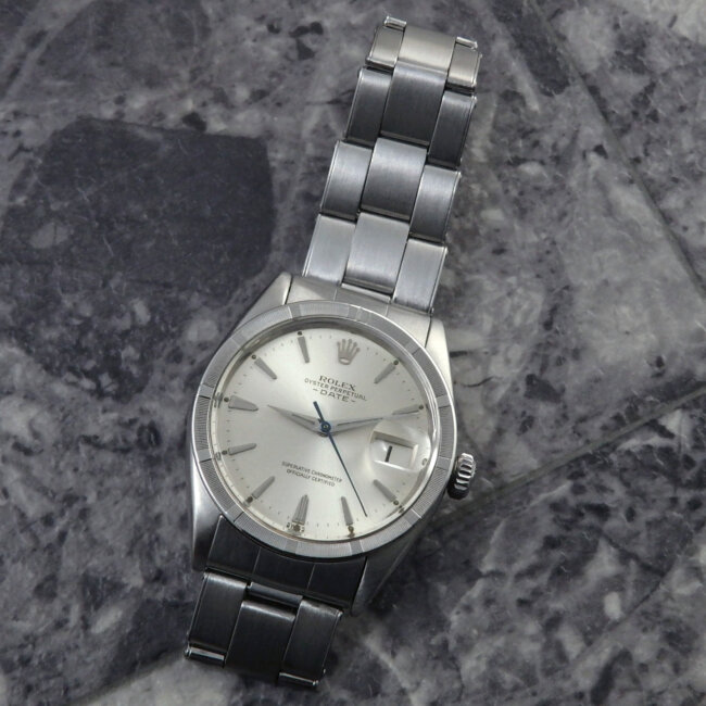 ロレックス オイスターパーペチュアルデイト Ref.1501 希少 ドルフィンハンド バタフライローター ブルースティールセコンド リベットブレス