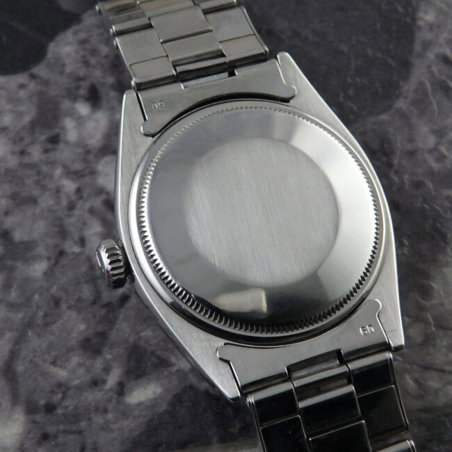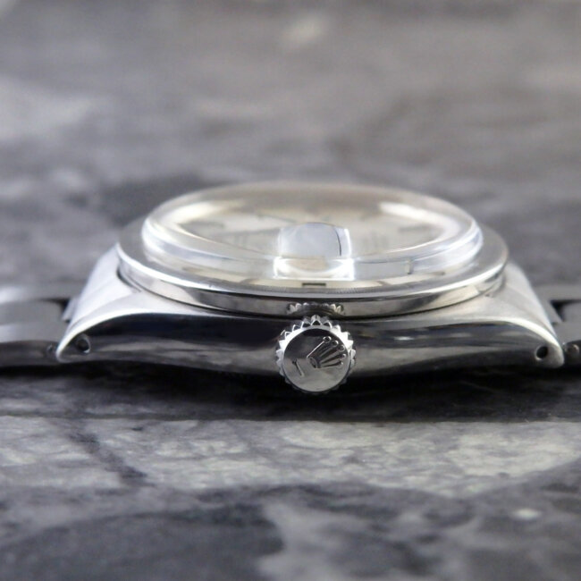 歴代ロレックスの自動巻きモデルの中でも評判も良い名機です。竜頭もロレックス王冠マーク入りです。