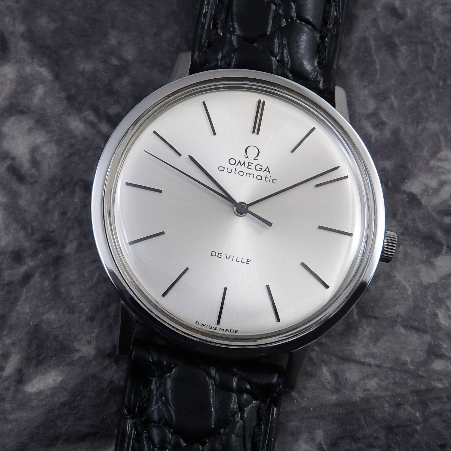 緻密な造りのペンシルハンドの長短針も良い雰囲気があり時刻を楽しめます。アップライトの12時位置のΩマークとOMEGAも浮き文字で緻密で美しく良い感じです。